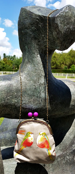 Se trataba de un tejido de loneta con un fondo entre gris y marrón y como decoración llevaba unos pájaros, que parecen pintados a mano con unos colores súper alegres. Una de esas telas con las que ya te imaginas que los trabajos que vas a hacer van a ser preciosos. Así que decidí utilizarla para este bolso tan veraniego. Un bolso chiquitito con una boquilla de metal y que sirve para meter lo imprescindible en una tarde de verano.