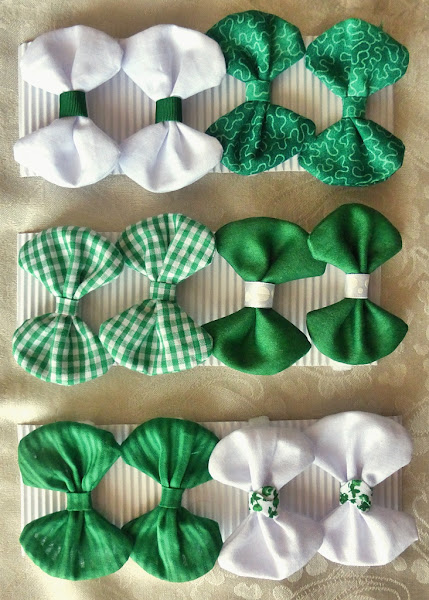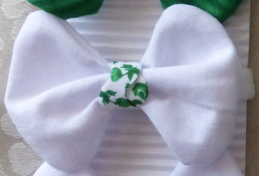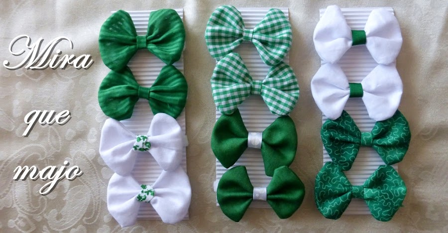 Cuando yo empecé a coser, cosa que a mi madre le encantó, me dio algunos materiales que ya no usaba y entre las cosas aparecieron los patrones de aquellas manualidades (algunas un poco pasadas de moda, pero otros de plena actualidad). Entre esos patrones estaban estos lazos, que transforme en coleteros y que tanto éxito han tenido. Los habéis visto varias veces en el blog en distintos colores y ahora, cómo no, en verde y blanco para el próximo San Lorenzo. Unos lazos que además de bonitos, para mi tienen mucho significado y me encanta hacerlos. Espero que a vosotros también os gusten y digáis "MIRA QUE MAJO"