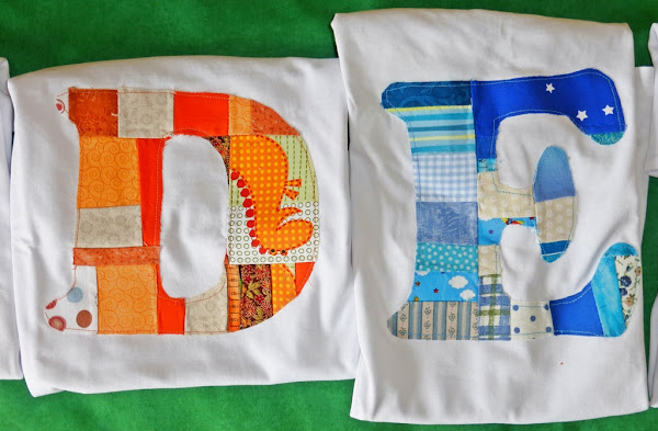 El año pasado uní un montón de esos trocitos pequeños de tela que nos sobran de distintos trabajos por colores, y a cada uno le hice la inicial de su nombre con el retalito que construí. Aunque aparentemente son muy sencillas, lo cierto es que lleva bastante trabajo unir todos los retales.