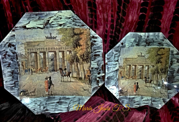Conjunto de bandejasde cristal realizada con técnica de decoupage de servilleta, pintadas, craqueladas y barnizadas