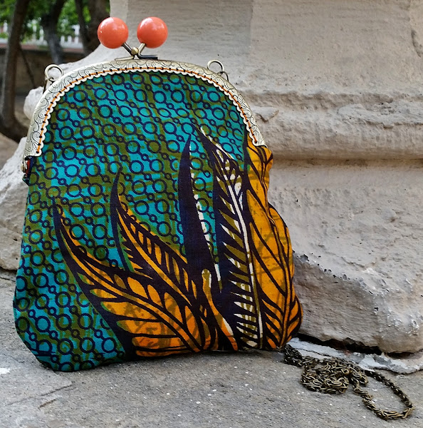 Hoy os enseño otro de los bolsos de boquilla, que tanto éxito han tenido este verano en Mira que majo. Éste está realizado con una tela africana traída de Gambia, que crea una combinación de colores alegre, pero al mismo tiempo con un punto de discreción, ya que los colores no son excesivamente llamativos.