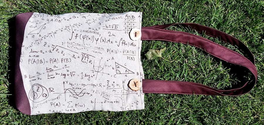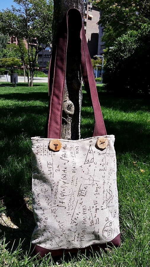 Hoy os enseño un bolso hecho con una tela que me encantó nada más verla y que es muy propia para estos días de inicio de curso. Se trata de una tela dedicada a las matemáticas, una de las asignaturas más temidas del colegio, pero con esta pieza las vemos de una forma divertida.