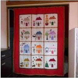 Pero en realidad lo que me gustaría contarles es que al fin he terminado mi "Wish Quilt"... y ha adornado la pared del salón de casa este año, junto con mis casitas de Shabby Fabrics.