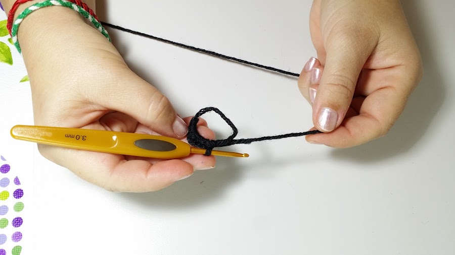 * Para no tener que rematar el hilo en cada una de las cadenetas, hacer un pequeño nudo y cortar la hebra justo después del nudo.
