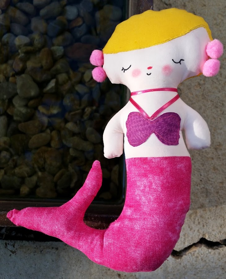 Busqué ideas y al final de la combinación de tres patrones diferentes y con algún trabajo de adaptación, salió ésta simpática sirena.