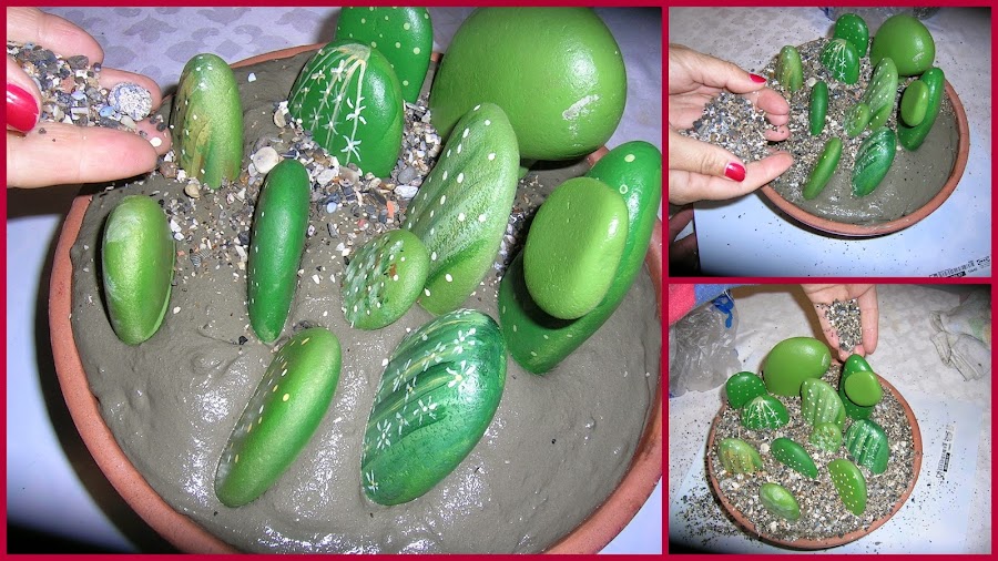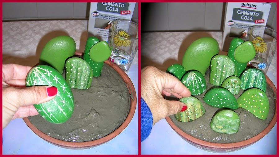 Y empecé a colocar las piedras que ya tenia pintadas que previamente había presentado para saber como quedarían una vez colocadas e ir a lo seguro.