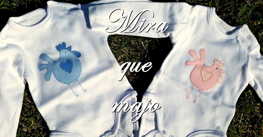 Un día, buscando ideas en el montón de libros y revistas que tengo, encontré estas simpáticas gallinitas, que me parecieron ideales para aplicarlas en unos bodys de bebé, una en tonos azules y otra en tonos rosas.
