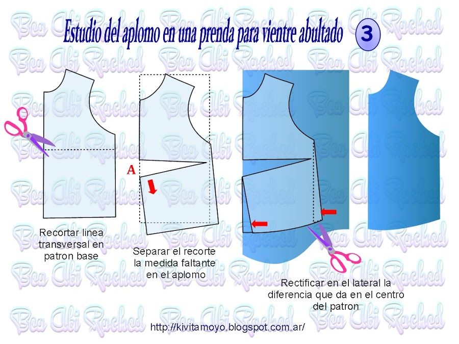 ATENCION: esto solo se puede aplicar en telas lisas o con estampados aleatorios, nunca con rayas o cuadros, porque se notaria la bajada del delantero, que es lo primero que se ve en una prenda.