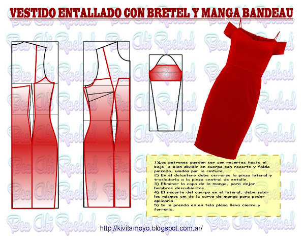 Transformacion a partir de vestido basico. Con dos posibilidades: hacer recortes con costadillo y piezas centrales, a lo largo del vestido. O dividir en la cintura, haciendo dichos recortes en el cuerpo y unir a una falda entallada por pinzas.