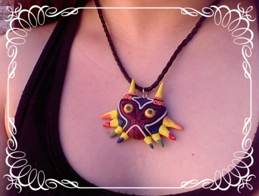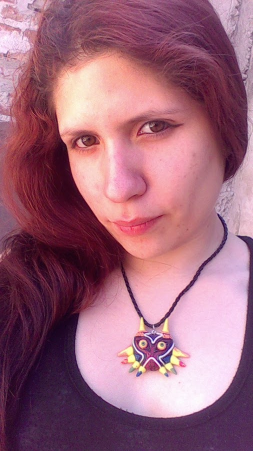 mi segundo trabajo fue un regalo para mi novio (como siempre :3 me encanta regalarle cositas hechas por mi <3 ) es un dije de la mascara de Majoras Mask del video juego La leyenda de Zelda