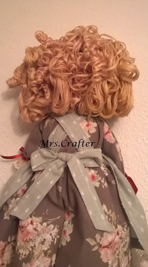 Cretonas de flores, grises y rosas en esta nueva muñeca de aire suave y romántico, articulada, para poderla colocar de pie o sentada.