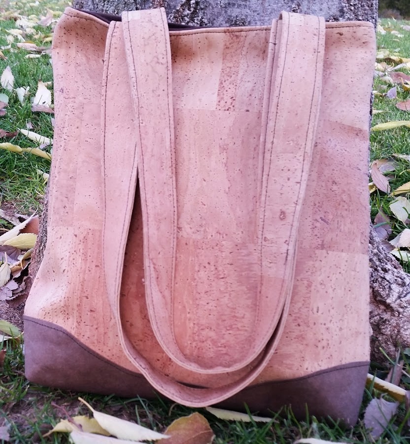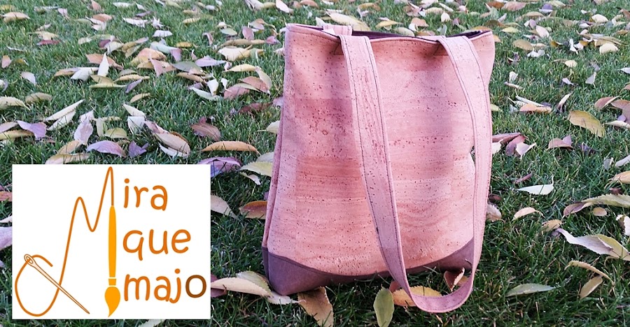 Hoy os enseño un trabajo en el que hemos experimentado con nuevos materiales. Se trata de un bolso hecho con tela de corcho, un tejido súper agradable al tacto, muy fácil de trabajar y agradecido en los resultados. Definitivamente me he enamorado de ella.