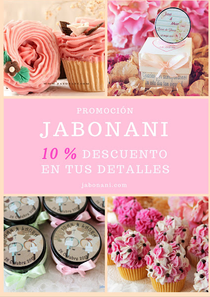 En Jabonani estamos de promoción especial por comienzo de año, aprovéchate de un 10 % de descuento en cualquiera de los detalles que elijas, para ello solo tienes que reservarnos tu pedido antes de que finalice el mes de Enero.¡¡No dejes pasar esta oportunidad, tus detalles hechos a mano y personalizados para tu gran día!!