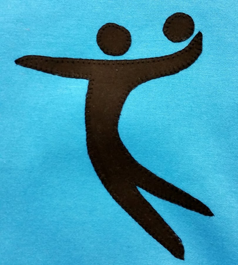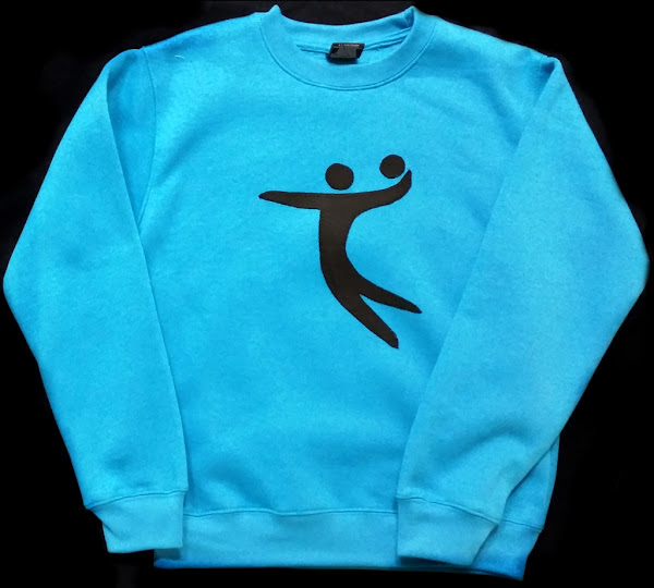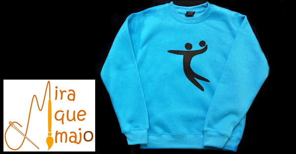 Hoy os enseñamos una sudadera muy deportiva. Se trata de una prenda de un azul muy alegre en el que hemos aplicado una figura sencilla de una silueta en tela negra dedicada al balonmano.