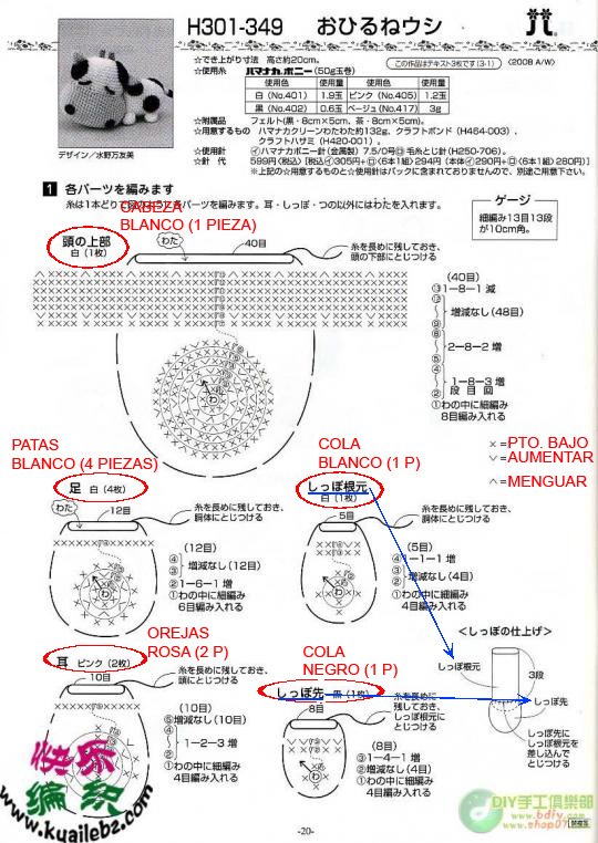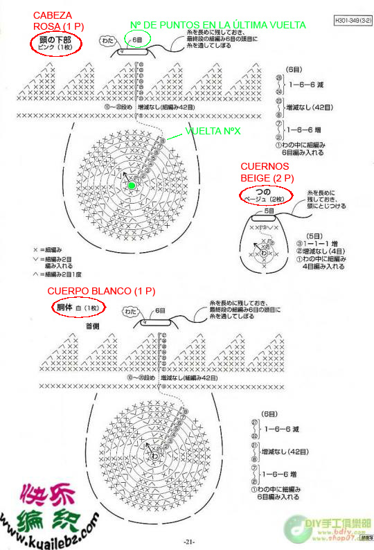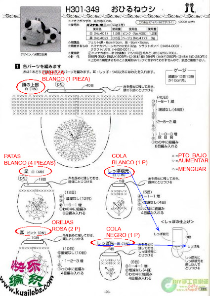 Por último les comparto estas hermosas vaquitas que hice :D las realice a partir de un diagrama japones que al igual que el Oso graduado comparto sus graficos abajo para que puedan tejerlos también :)