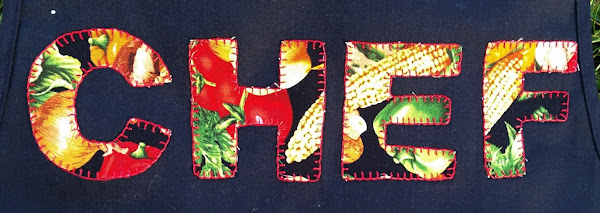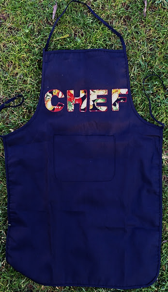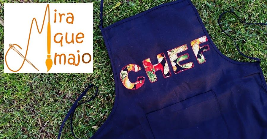 Este es el caso del que os enseñamos hoy, un delantal negro ya confeccionado en el que aplicamos la palabra CHEF con una tela de verduras. Tenía mucho sentido, porque fue un regalo para mi prima Macu, cuya vida gira en torno a las frutas y verduras.
