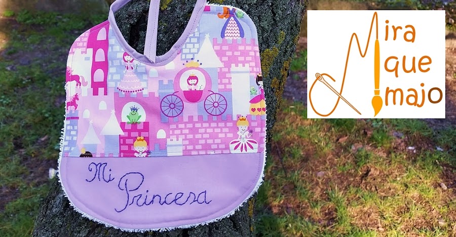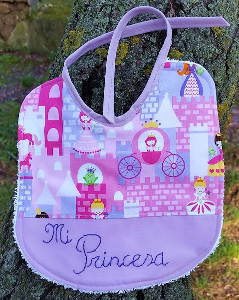 Hoy os enseño un baberito de esos tan pequeñitos y perfectos para una princesa. Está confeccionado con una tela que ya os hemos enseñado en otros trabajos, que es muy muy rosa y está llena de castillos y princesas.