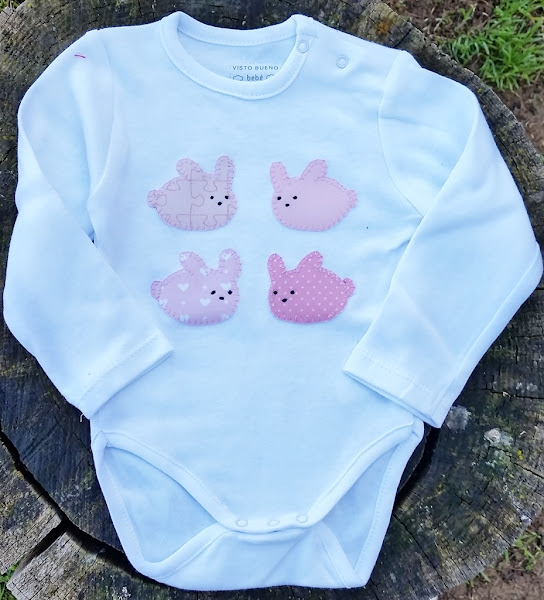 Os enseñamos un body y un babero que están llenos de pequeños conejitos muy simpáticos, esta vez en tonos rosas, y que además nos permiten poder personalizarlos poniéndoles el nombre del pequeño o la pequeña debajo de los animalitos.