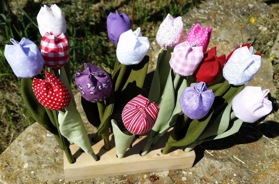 Hace tiempo que tenía pendiente hacer estos tulipanes. Los había visto en muchas páginas de manualidades que sigo y hace poco, casi por casualidad, me llegaron los patrones, así que ya no tenía excusa para hacer estas piezas tan originales.