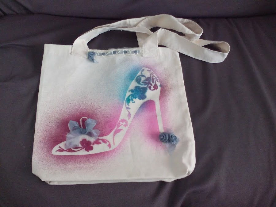 Stencil aplicado en una bolsa de lona, para lucir esta primavera