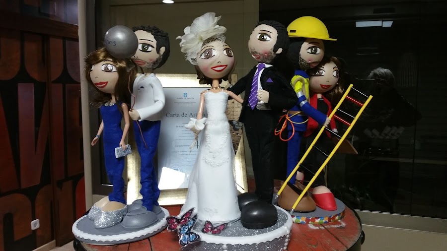 Empezamos con Domingo y Vanesa que quisieros sus miniyos personalizados en tres versiones , trabajo, fiesta y boda.