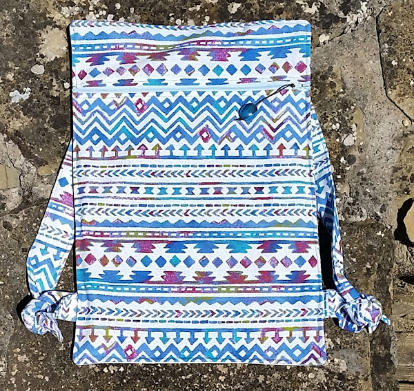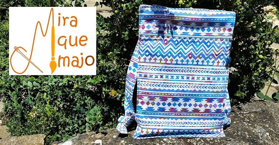 Hoy os enseñamos una mochila, hecha con una tela de algodón rustico de estilo étnico en tonos azules. La de hoy es un poco más pequeña que otras que hemos hecho, ya sabéis que no todas son del mismo tamaño, ya que depende de cómo sale el corte de la tela.