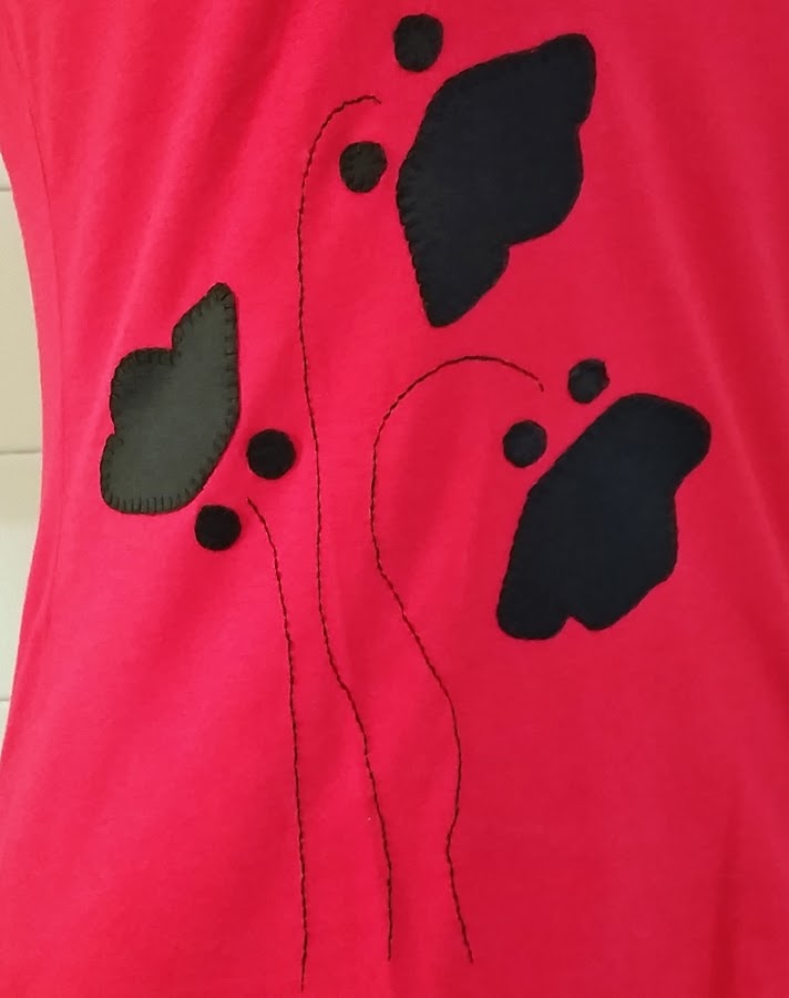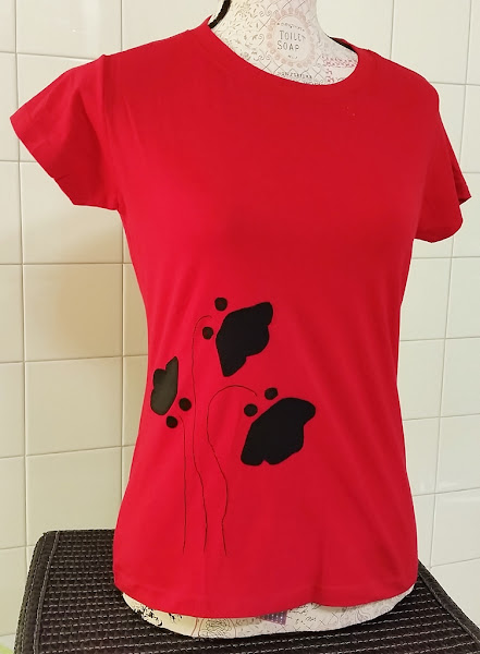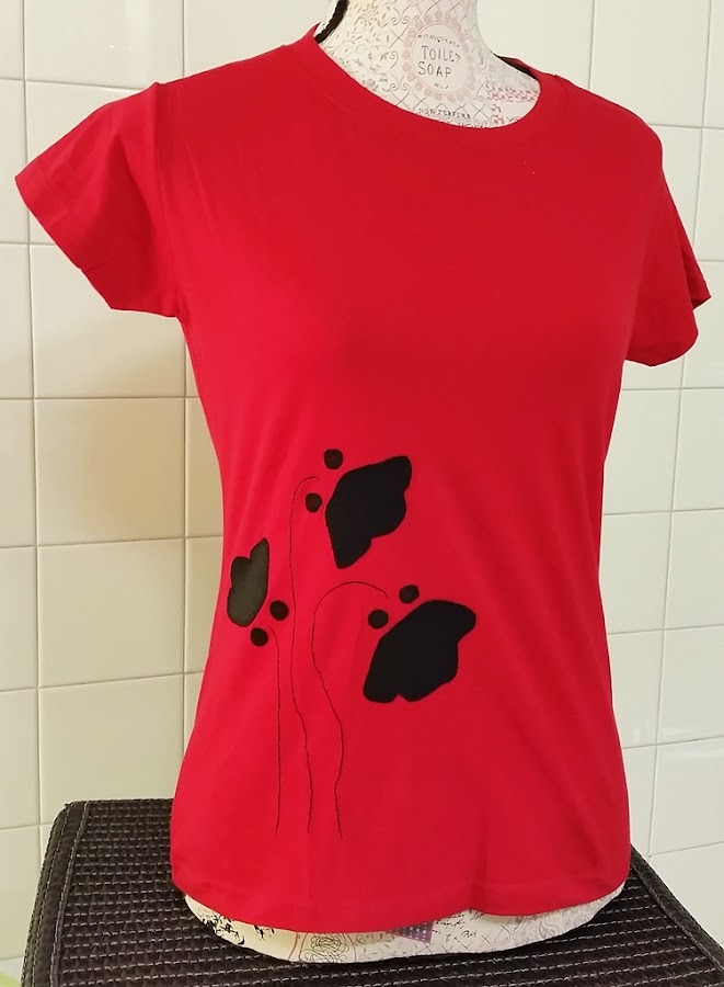 La de hoy tiene esa combinación: una camiseta roja con la aplicación de unas amapolas negras, que le da un aspecto sofisticado y diferente.