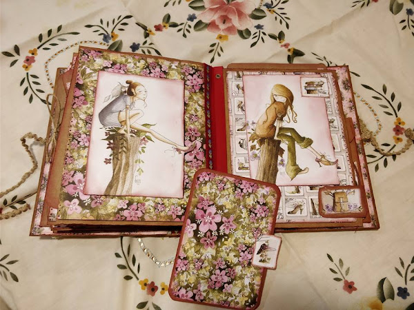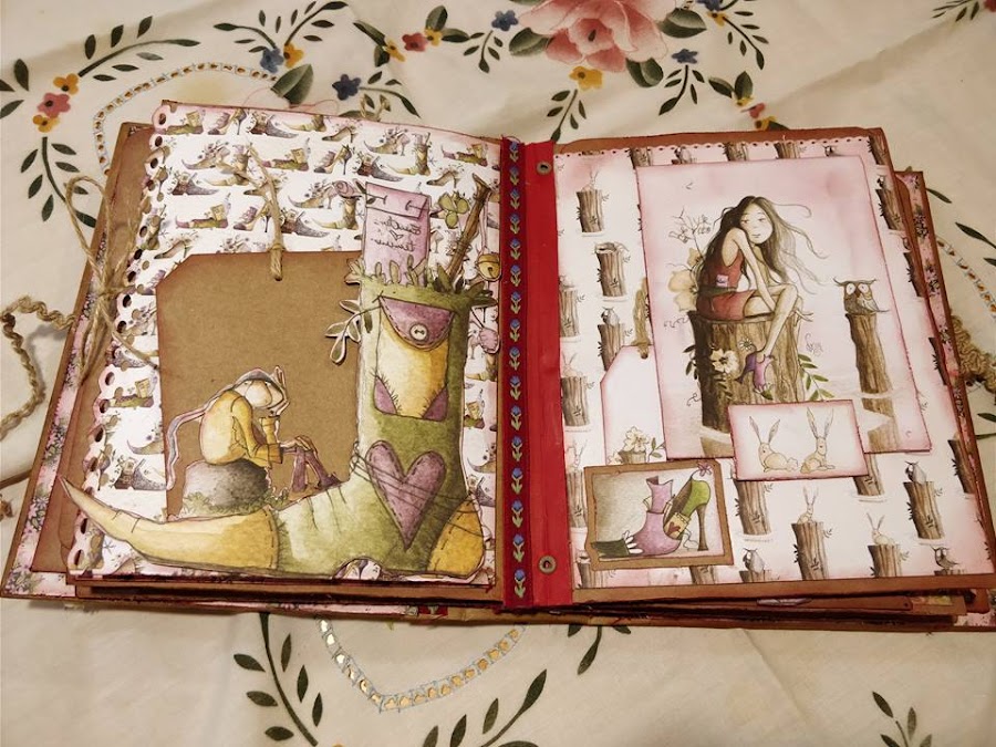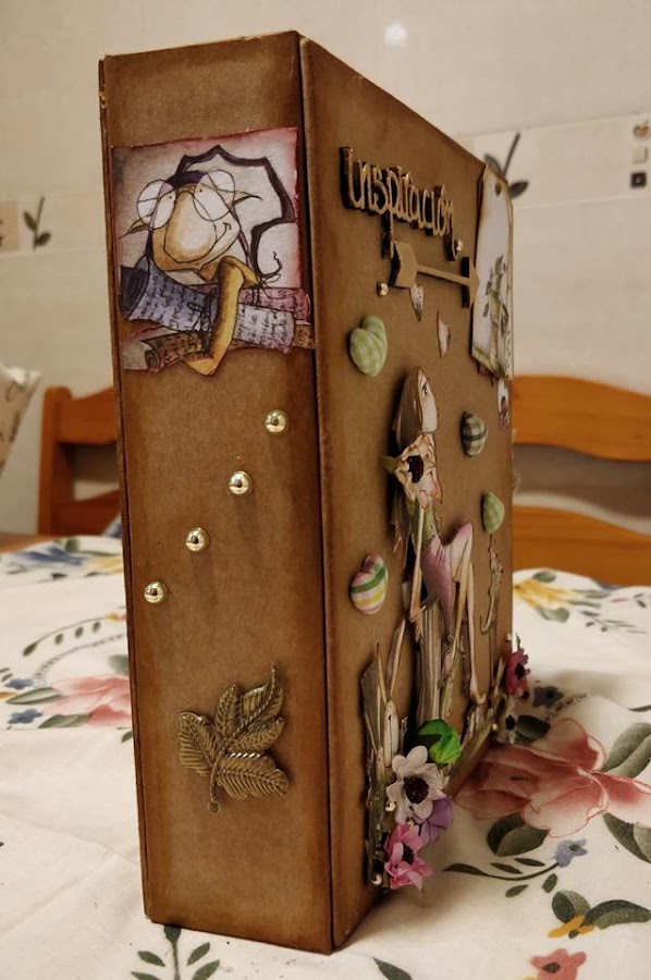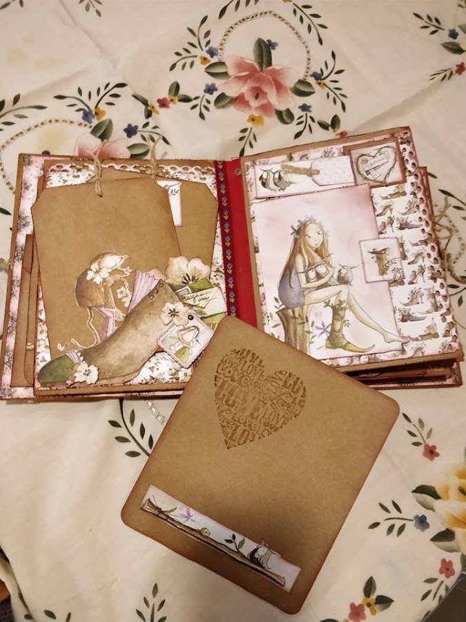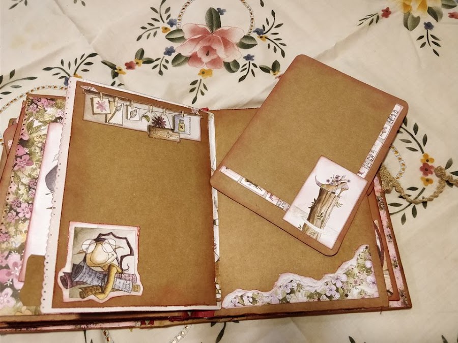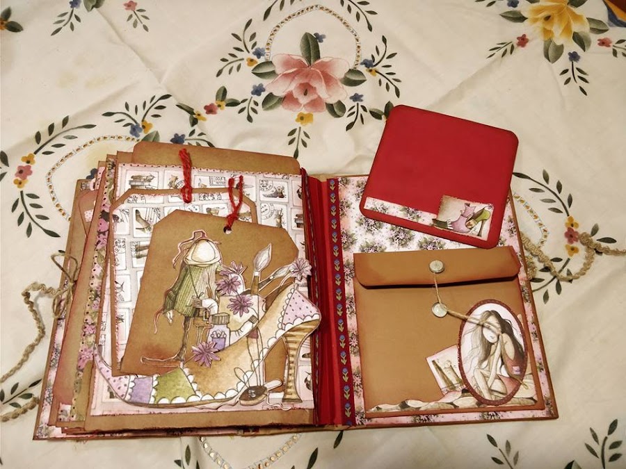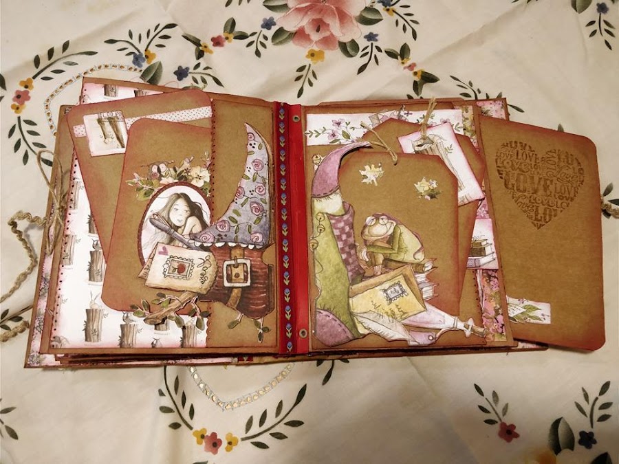 He realizado un curso con Cristina Radovan, en el que nos ha enseñado a crear este álbum al que yo he dado mi toque personal. Los papeles son del Altillo de los Duendes. Ampliando conocimientos.