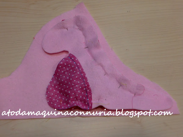 Coloca la barriga en su posición enfrentando el derecho de la tela de la barriga con el derecho del fieltro. Haz lo mismo con el otro lado.