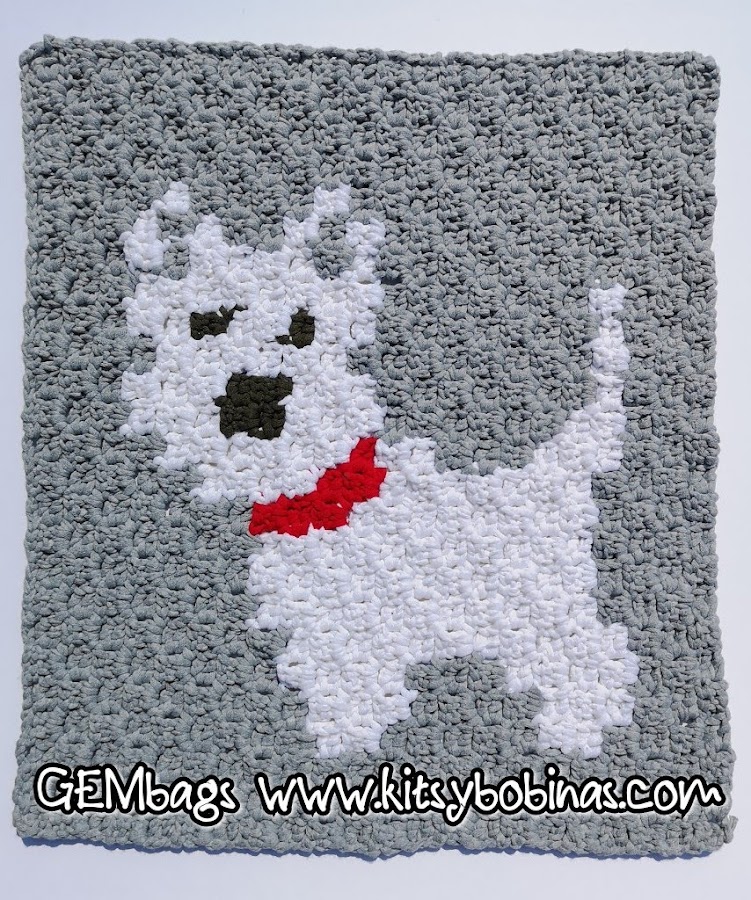 Publicamos nuestro primer trabajo con esta técnica, nuestra alfombra de trapillo ligero GEMbags con el dibujo de un perro.