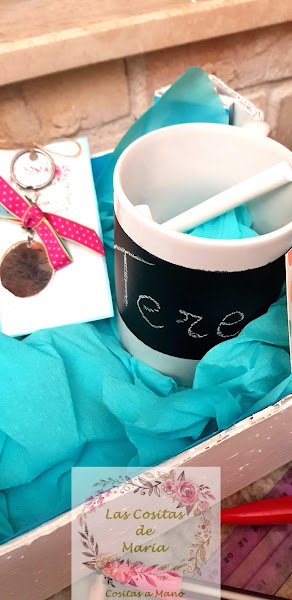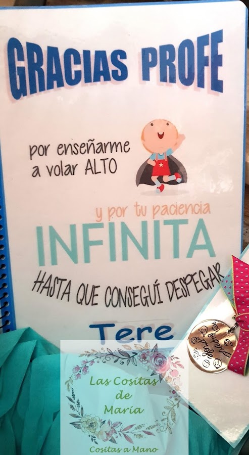 Además, la caja lleva una pegatina personalizada también con el nombre de la profe. ¡Increíble!
