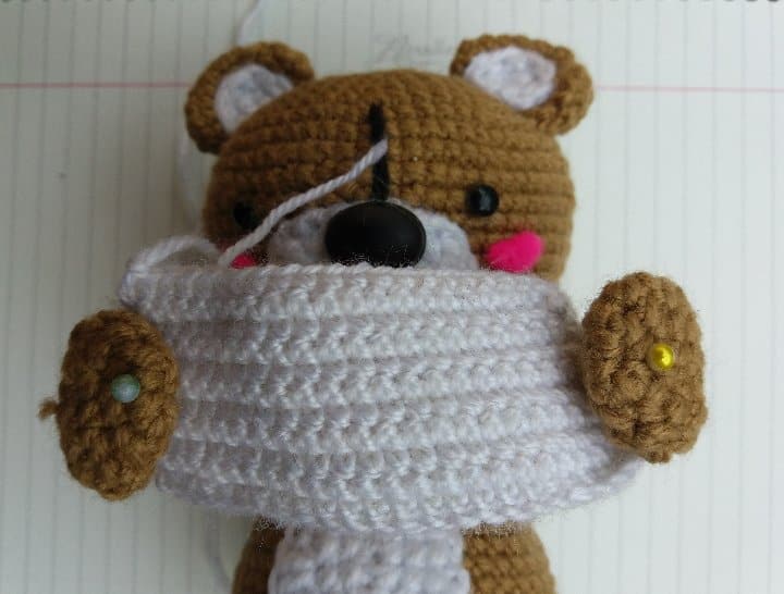 * COSEMOSA LOS LADOS LAS MANOS DEJANDO UN ESPACIO PARA QUE EL OSO TENGA "CUELLO (VER FOTOS)