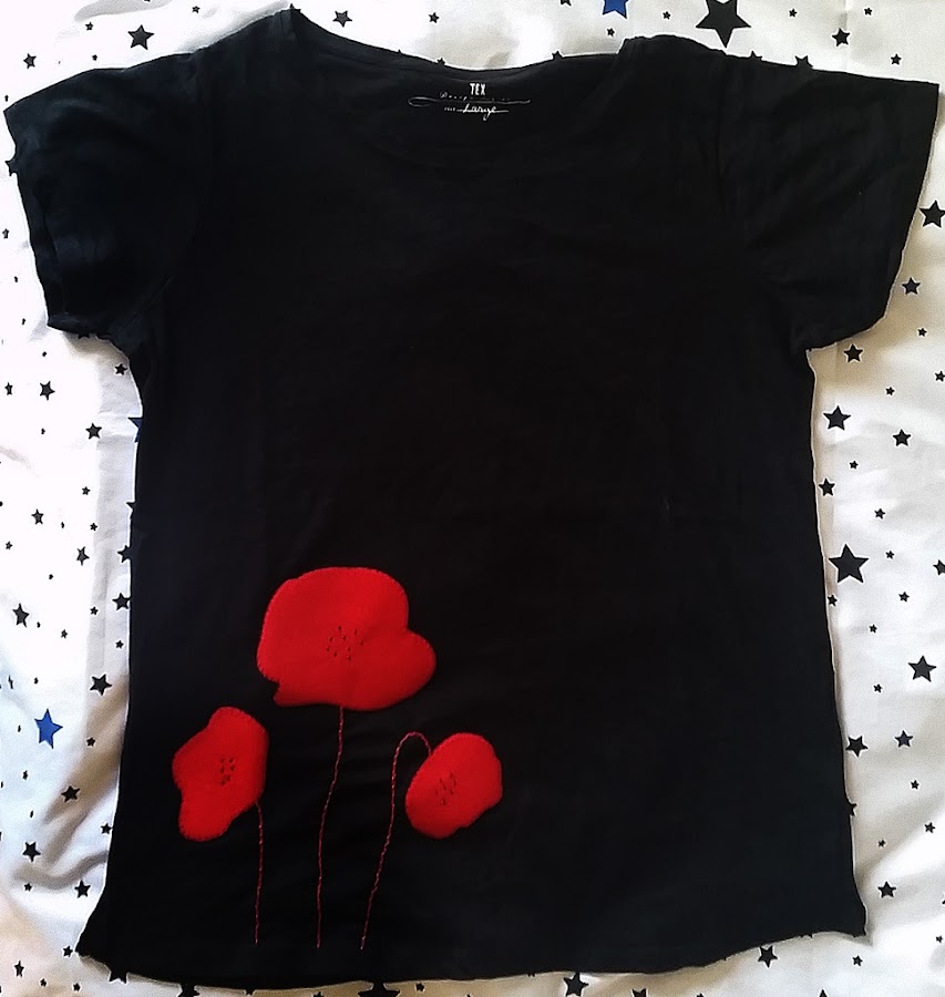 Hoy os enseño una camiseta con unas amapolas que ya había utilizado en una falda, pero que me gustan tanto que las he vuelto a utilizar en una camiseta con una versión diferente.