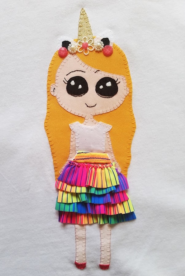 Me pidieron que decorara la prenda conun unicornio o una niña disfrazada de unicornio, así que finalmente me decantépor la segunda opción.