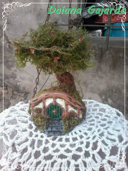 POR ÚLTIMO LES MUESTRO ESTA CASA DEL HOBBIT QUE HICE COMO REGALO PARA MI NOVIO TIEMPO ATRAS, ESTA PINTADA CON ACRILICOS Y BARNIZADA LA PARTE DEL ÁRBOL Y EL PASTO ESTA HECHO CON MUSGO