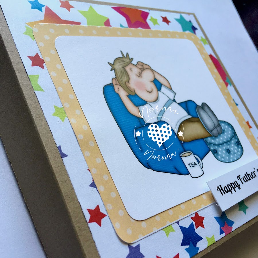 Otra proyecto para el dia del padre, en esta ocasion hice una caja para pizza, que aprendi a hacer durante una crop con mi amiga Giovanna Restrani. Use un sello digital que luce como muchos papas cuando llegan a casa, no es asi?
