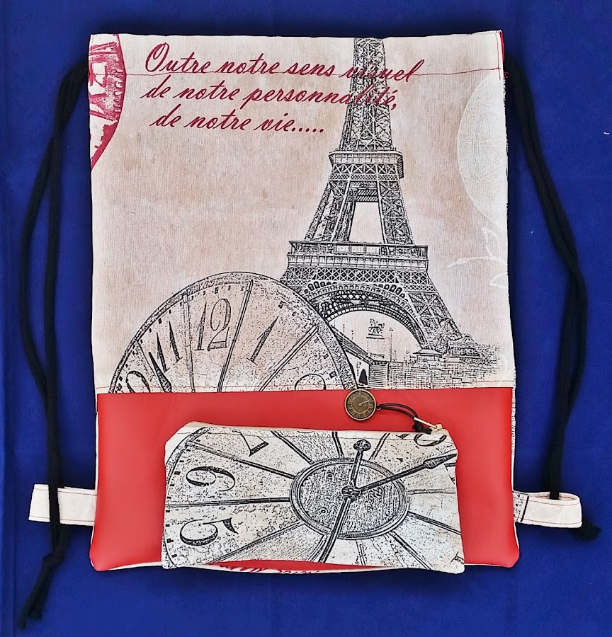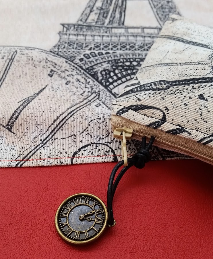 Para la de hoy hemos elegido una tela muy chulay lahemos combinado con polipiel roja, que ayuda a resaltar aún mas el dibujo del tejido. Como complemento hemos hecho un estuche de la misma tela , cogiendo un corte en el que aparece el reloj protagonista.