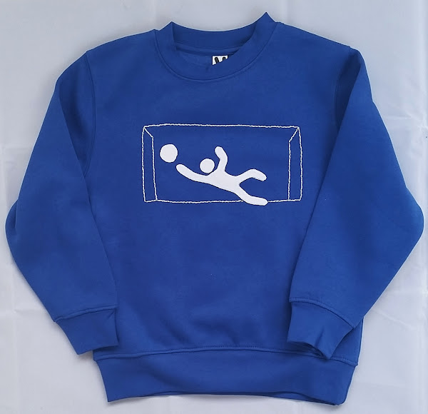 Hemos elegido un dibujo sencillo, relacionado con el deporte rey, y lo hemos aplicado sobre una sudadera azul.