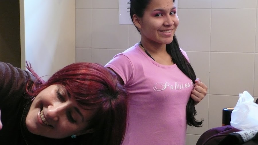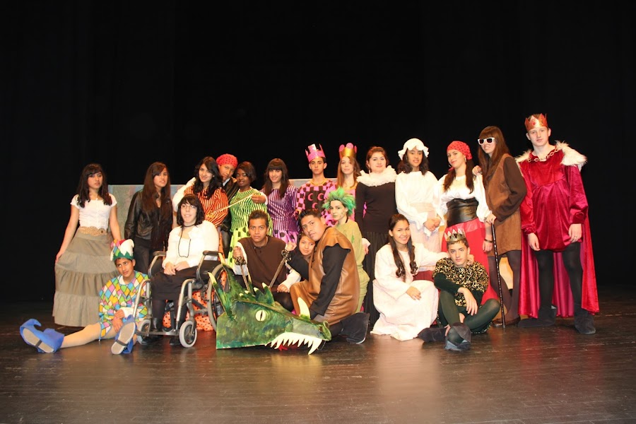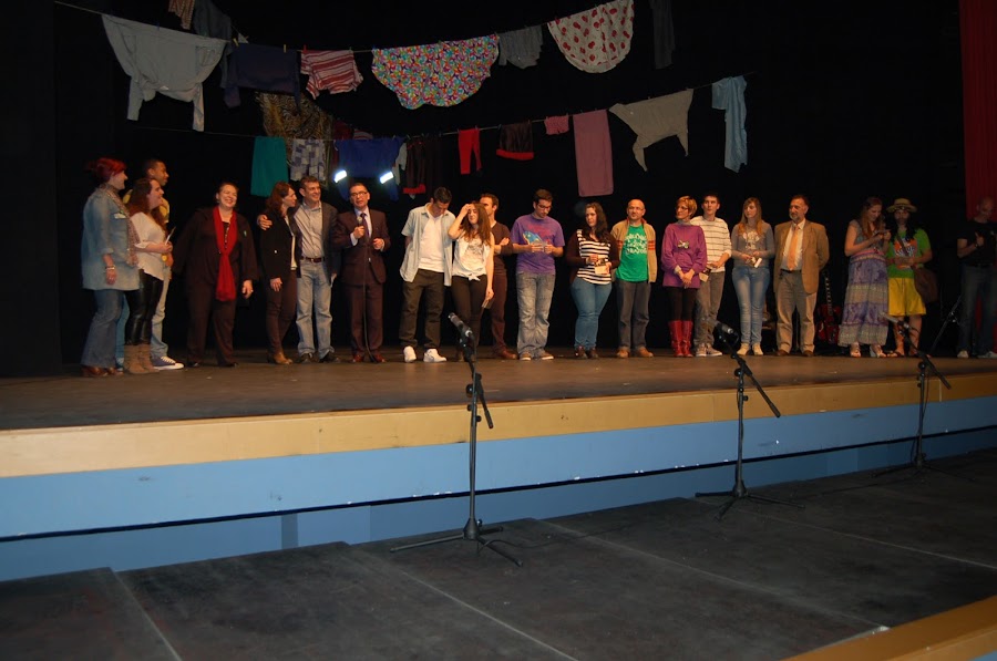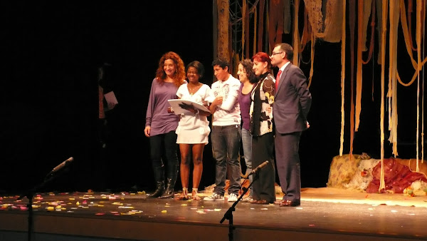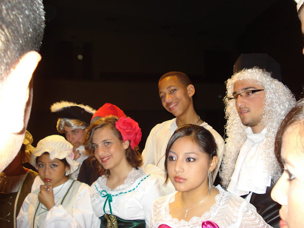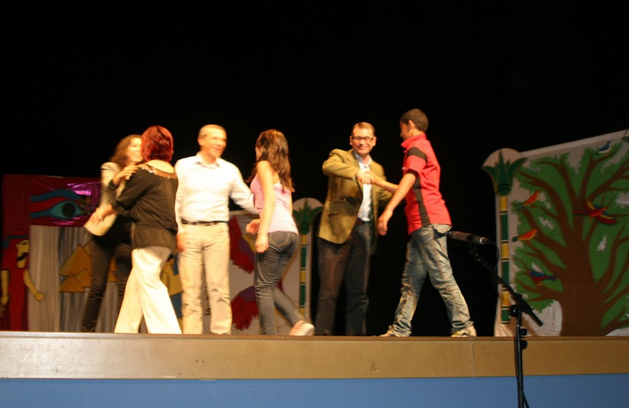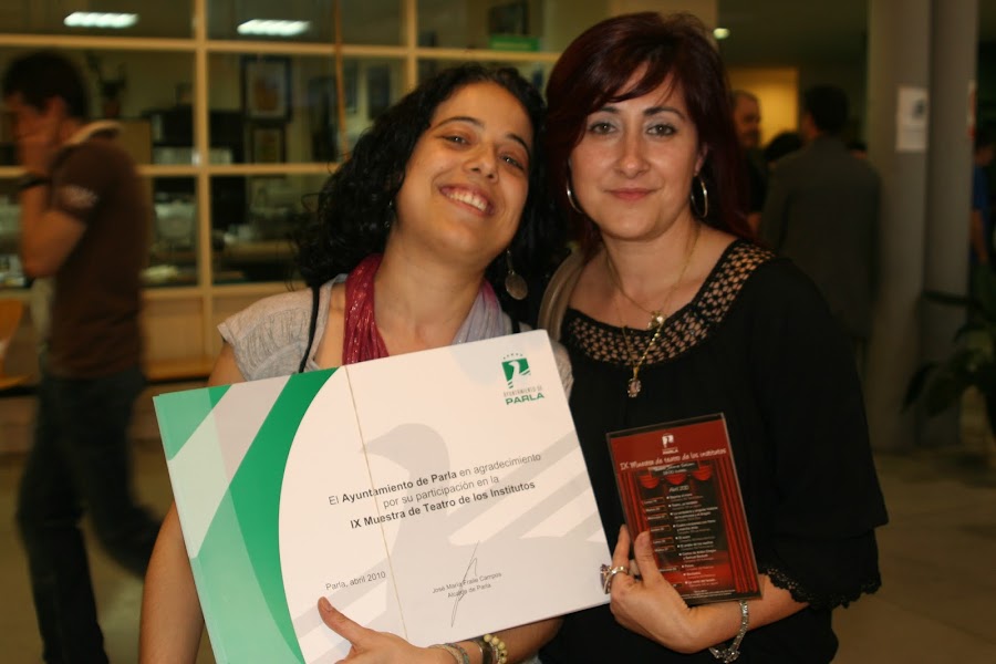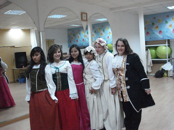 Obra teatral, profesoras y yo incansables trabajando duro por su realización .