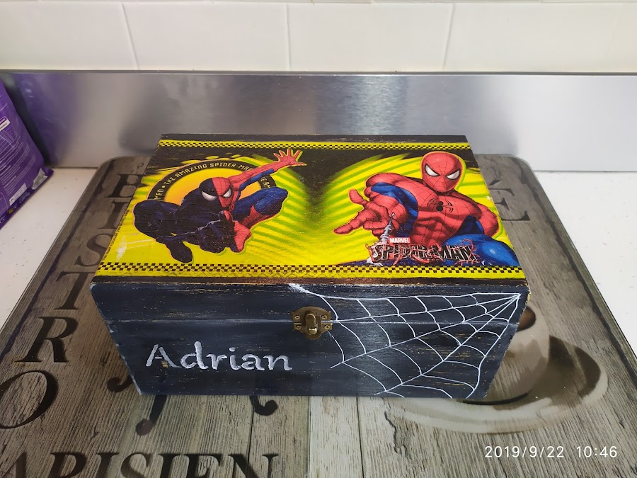 La caja de Spiderman,fue un encargo del Adrian el cumpleañero,él me decia -Mayte para mi cumple me haces una caja,lo consulté con la madre