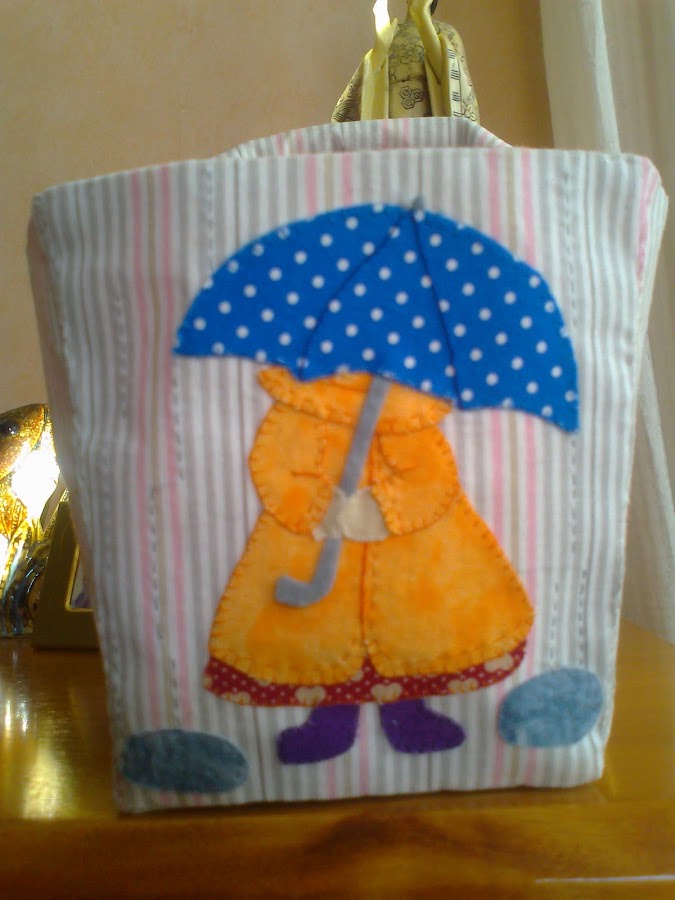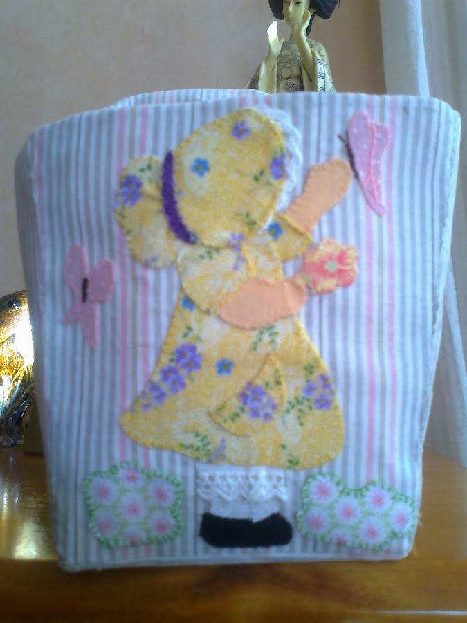 Como vereis estas fotos son de mala calidad pues están hechas con el móbil, Ufff esperamos aprender y mejorar porque si no nos quedará el blog hecho un churro. Bueno la cestita la vi en el foro de Facilisimo una forera llamada Isi había hecho un SAL, pero como ya habian terminado pues encontramos los patrones en una revista japonesa y ahí está . Es las 4 Estaciones jejejeje. y va acompañadita de una caracolita "Tilda" y unos baberitos con tela a juego ¿Os gusta? les llamaremos versión "Dulce" pues también pondremos los "Salaitos"