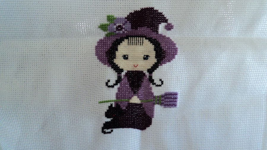 esta es una brujita que hice para un babero de mi sobrina y al final le gusto tanto que prefiere tenerla en cuadro jejej.