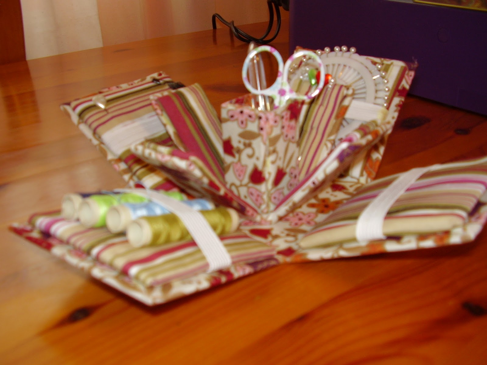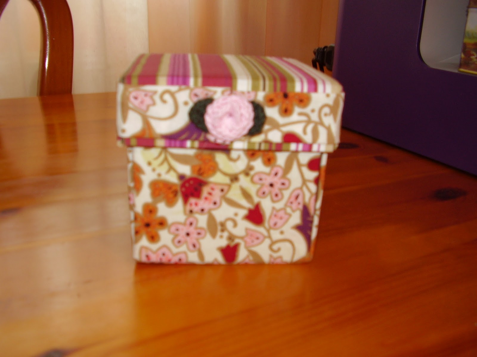 Y esta es una cajita costurero que hice ayer por la tarde, no había trabajado nunca con cartón pero me encanta, no descarto que sea lo último que haga. No es difícil pero si laboriosa porque tienes que cortar, pegar, volver a cortar, coser.. en fin pasas la tarde de una manera muy entretenida. La rosa de ganchillo que lleva de adorno me la regaló mi amiga Chusy, y he creído que este era un lugar perfecto para colocarla.
