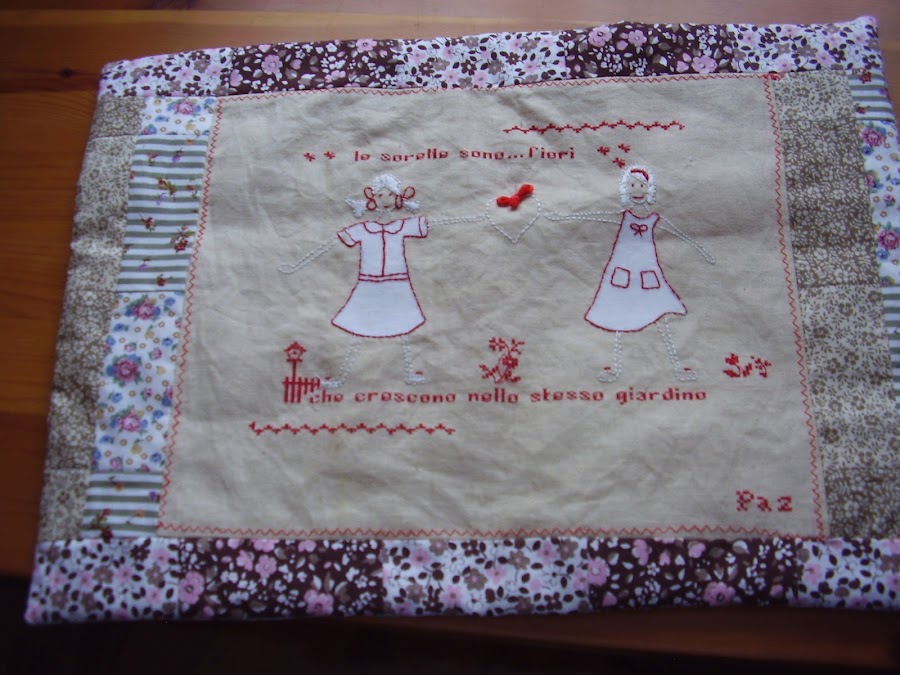 Tenía ganas de hacer un block-roll para guardar todas las labores que vamos haciendo y que de momento no encontramos sitio para colocarlas y después de ver un montón por la red y coger ideas de unos y de otros, me puse manos a la obra y aquí está el mío, las fotos son un desastre, lo se. Está hecho en lino que previamente teñí con té rojo y los dibujos son a punto de cruz y pespunte, el contorno son telas unidas a modo de password, combinándolas como mejor me parecieron. ¿qué os parece?