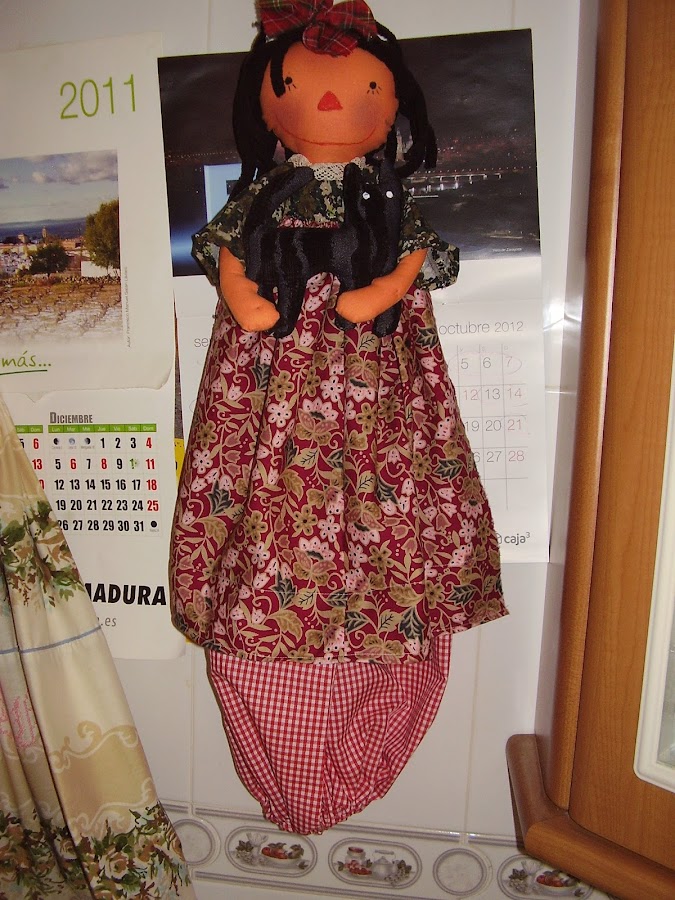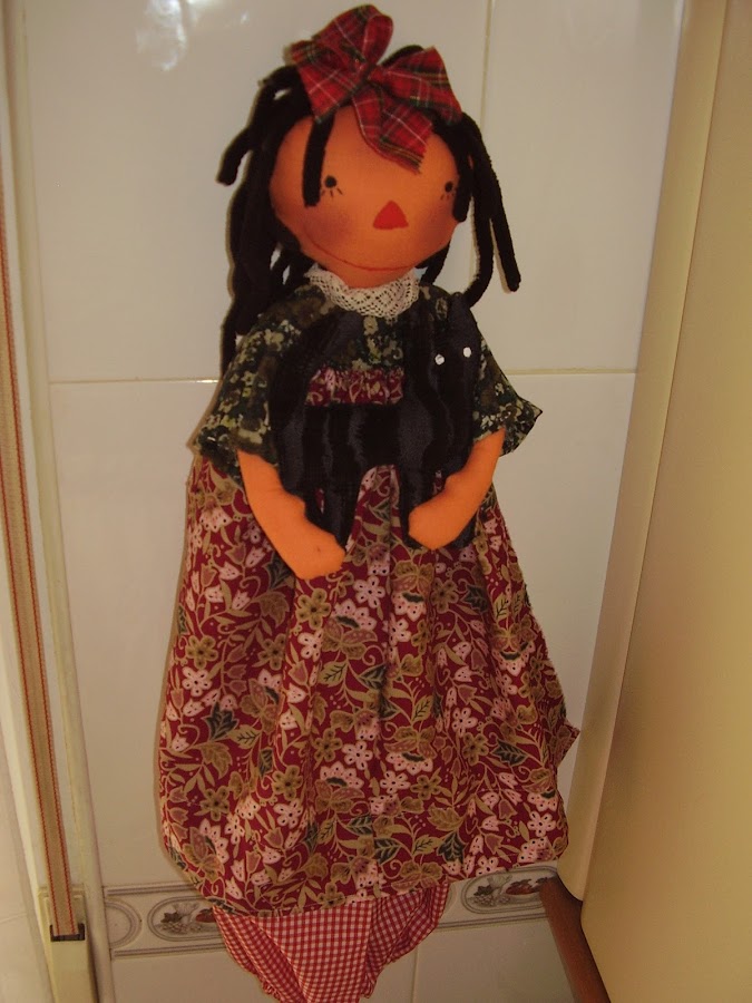 Y para darle la bienvenida al otoño, he hecho una muñeca guardabolsas que tenía ganas de hacer desde hace tiempo. Os la enseño