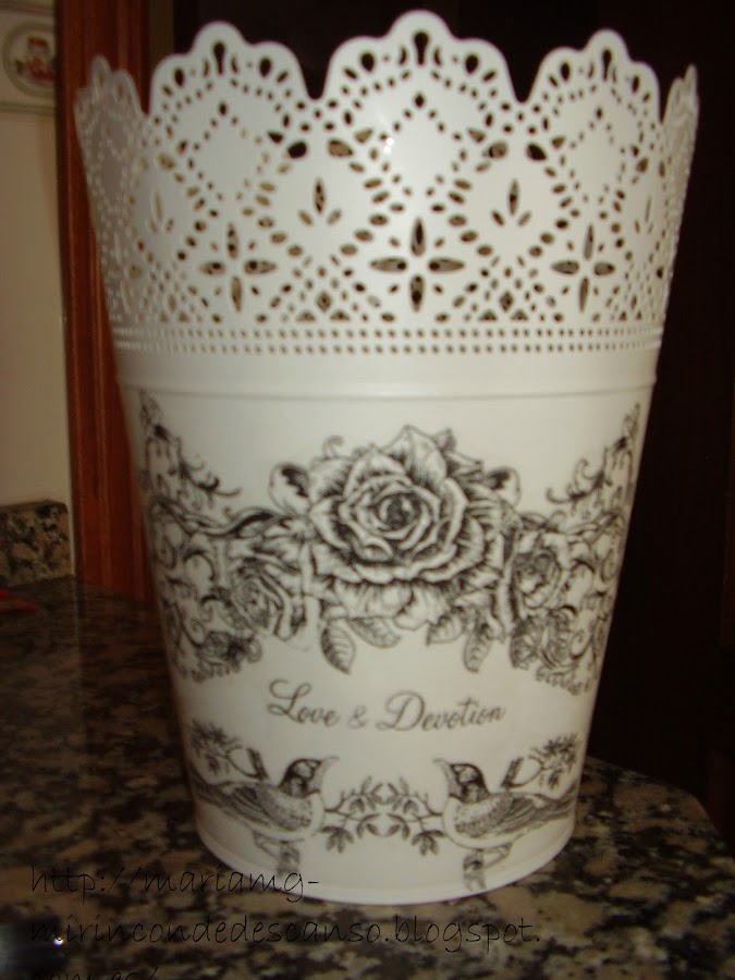 Y uno de esos trabajos es este macetero de ikea que os enseñé en una entrada anterior y al que le he puesto simplemente un transfer, y nada más. me ha parecido que así queda precioso y no necesita más.