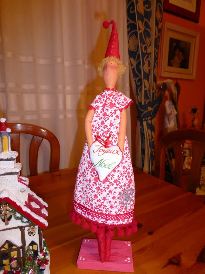Al corazón de este duendecillo le puse el Joyeus Noel con decoupage, y al vestidito le pegué una estrella de nieve que tenía guardada.