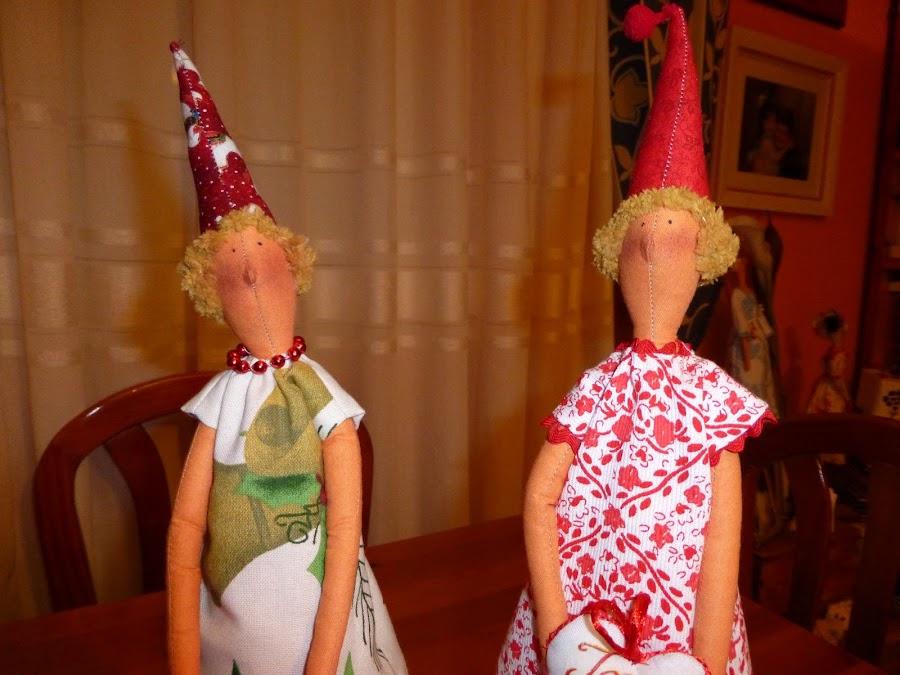 Hola de nuevo, esta primera foto que os enseño es un proyecto que he hecho para el blog "Las Tildas de Canelussaka y sus amigas", del cual soy miembro. En este blog se hacen proyectos en conjunto cada mes del año, y yo me apunté al del mes de Diciembre, a la 1ª opción, y estos dos duendes de Navidad es lo que tenía que hacer. He de decir que es la primera vez que participo con ellas pero que no será la última porque me ha encantado hacerlo, me encanta su blog.