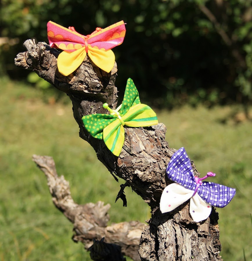 Bueno, como os iba contando a Vanesa le encantan las mariposas y siempre me está diciendo que le busque cosas sobre ellas. Así que un día recabando ideas, me encontré con una forma muy sencilla de hacer mariposas y decidí elaborar unos broches para adornar las camisetas, los bolsos o cualquier otra cosa que se me vaya ocurriendo, seguramente otro día lo veréis en algún otro trabajo, pero hoy os enseño unos simpáticos broches.