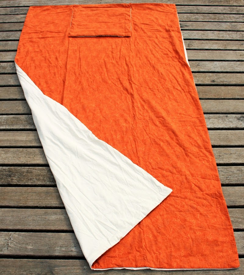 Como veis la manta también es bicolor, por un lado blanca y por el otro naranja para mantener la armonía de tonos del cojín.